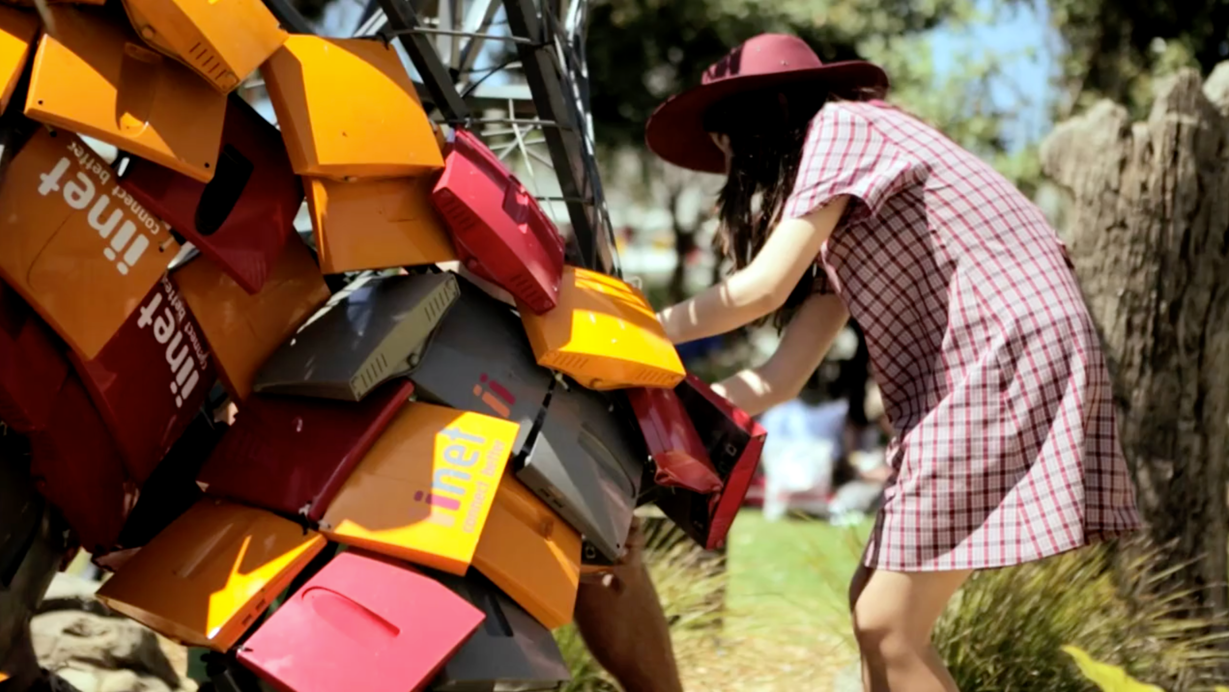 iiNet is constantly upgrading their customers lives with the latest in technology but wanted to show that they are conscious of old technology being disposed of in a sustainable way. iiNet wanted to prompt people to think and talk about where their old phones, modems and tablets end up. The target was broad, encompassing all attendees at Sculpture by the sea as well as the FB community